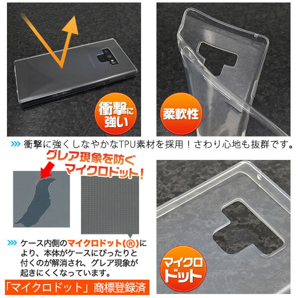 しなやかで衝撃に強い! Galaxy Note9 SC-01L/SCV40用マイクロドット ソフトクリアケース シンプルな透明のマイクロドット ソフトクリアケース 素材は適度な硬さと弾力性をあわせ持つTPUを採用。