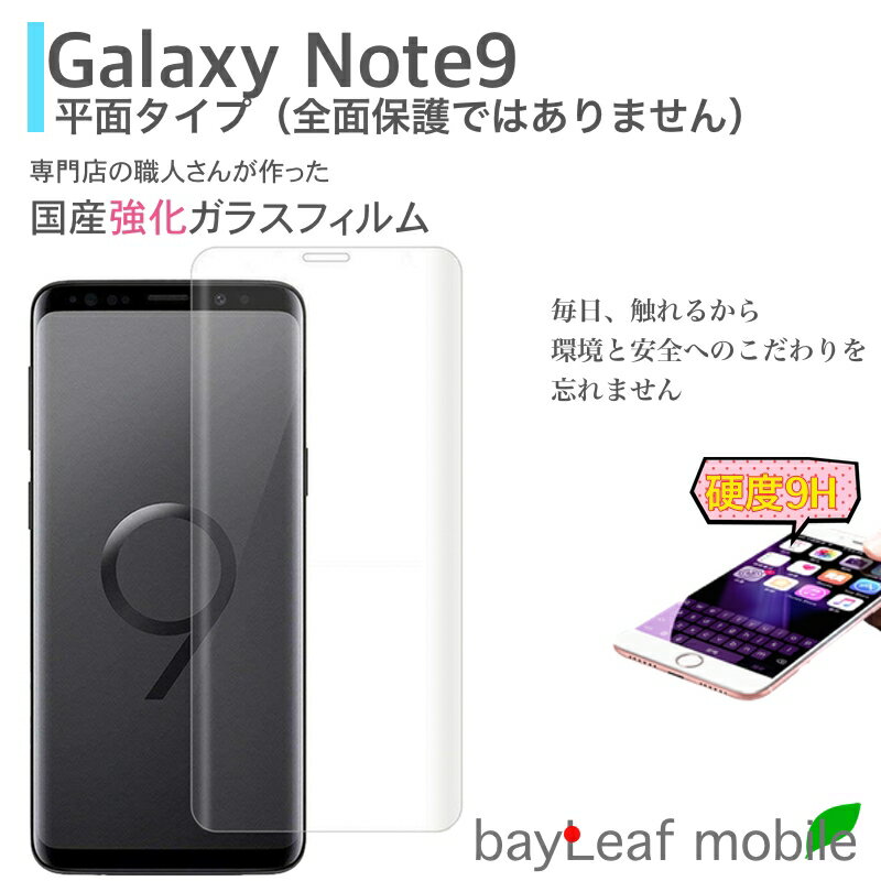【対応機種】 ・Galaxy Note9 ■商品説明: ・実機に基づいた専用設計(他機種ではご利用いただけません) ・前面(ディスプレイ)用 ・旭硝子製ガラス素材を使用 ・高硬度加工(9H)で傷に強い ・ラウンド(2.5D)エッジの滑らかな側面 ・薄さと強度が適度な0.33mm厚 ・高透過率 ・汚れ/気泡/飛散防止加工 ・付属品: ガラスフィルム、アルコールウェットティッシュ、クリーニングティッシュ、ホコリ取りシール 【国産ガラスのラウンドエッジ仕様】 ガラスの縁を丸くカットすることで縁にかかる衝撃を吸収し、ガラスが割るリスクを軽減し、カットした部分が光を反射するため通常タイプよりも高級感が増します。