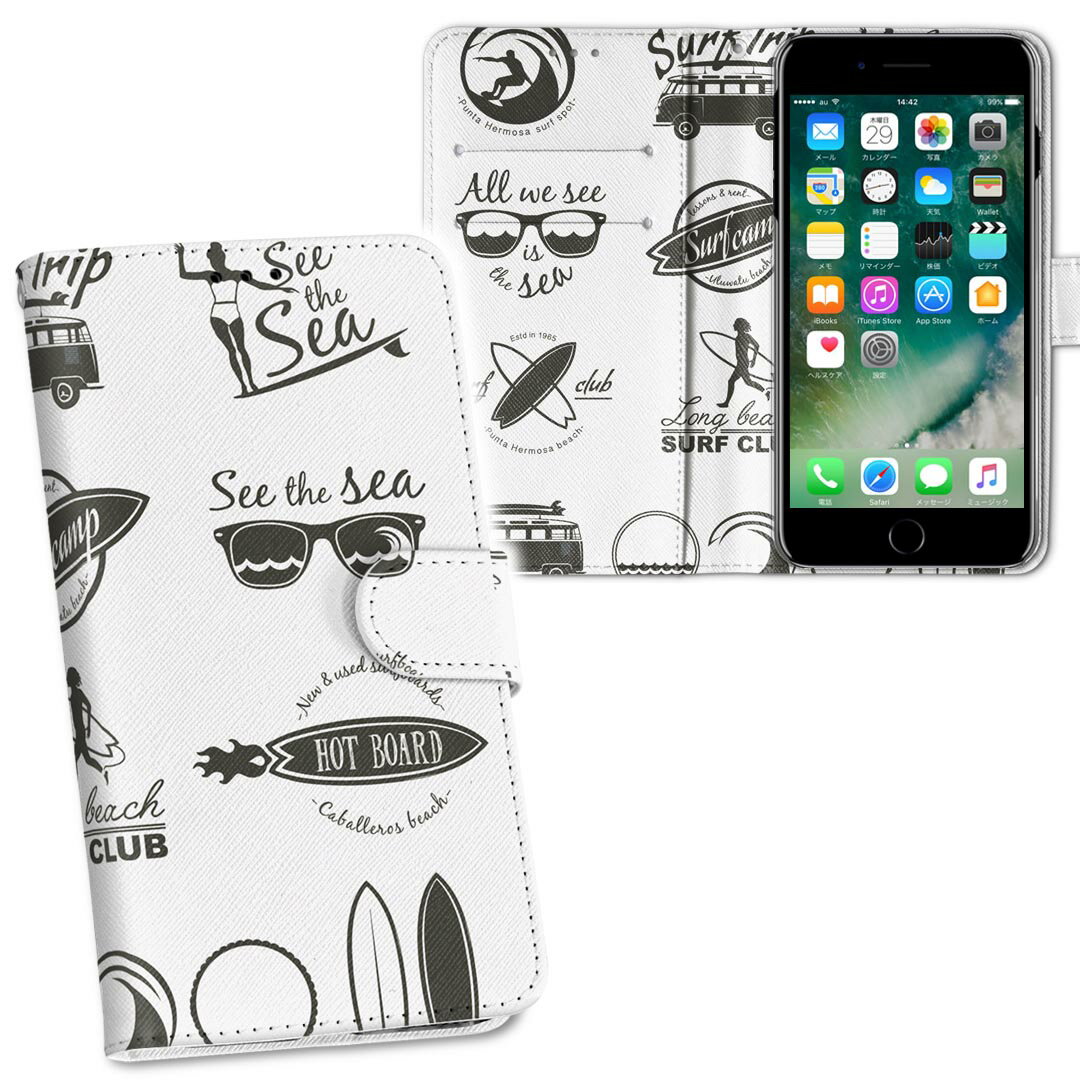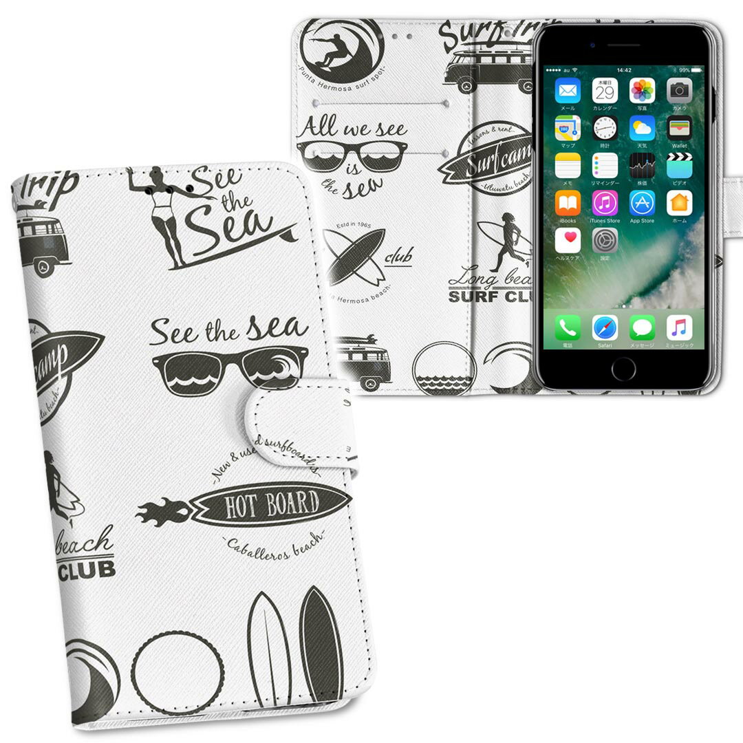 KYV40 rafre au エーユー 両面プリント 裏表 内側 内面 スマホ カバー レザー ケース 手帳タイプ フリップ ダイアリー 二つ折り 革 フルデザイン 013886 サーフィン 海 ロゴ