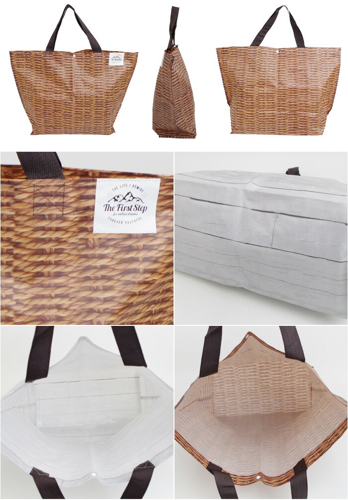 トートバッグ 大容量 お買い物バッグ サブバッグ スイット キャリーバッグ L レディース/メンズ ブラウン/ホワイト 20L M12581/M12582 ショッピングバッグ ランドリーバッグ 大きめ おしゃれ スナップボタン 肩掛け 郵 メール便 対応