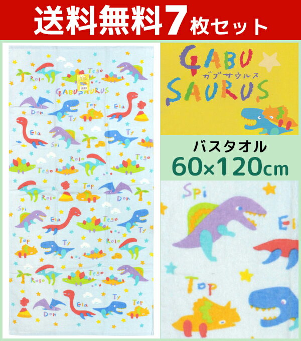 送料無料7枚セット 林タオル ガブサウルス バスタオル ガブライン 恐竜 60cm×120cm キャラクターグッズ まとめ買い 綿 コットン | グッズ 綿100% 結婚祝い プレゼント 入園祝い かわいい ギフト 可愛い キャラクター バス タオル