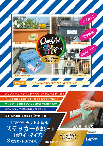 A4サイズ100枚入り ●ラミネートシールのフィルムに、UV99%カットの効果を持たせた、防水フィルムシールが自作できるセットです。